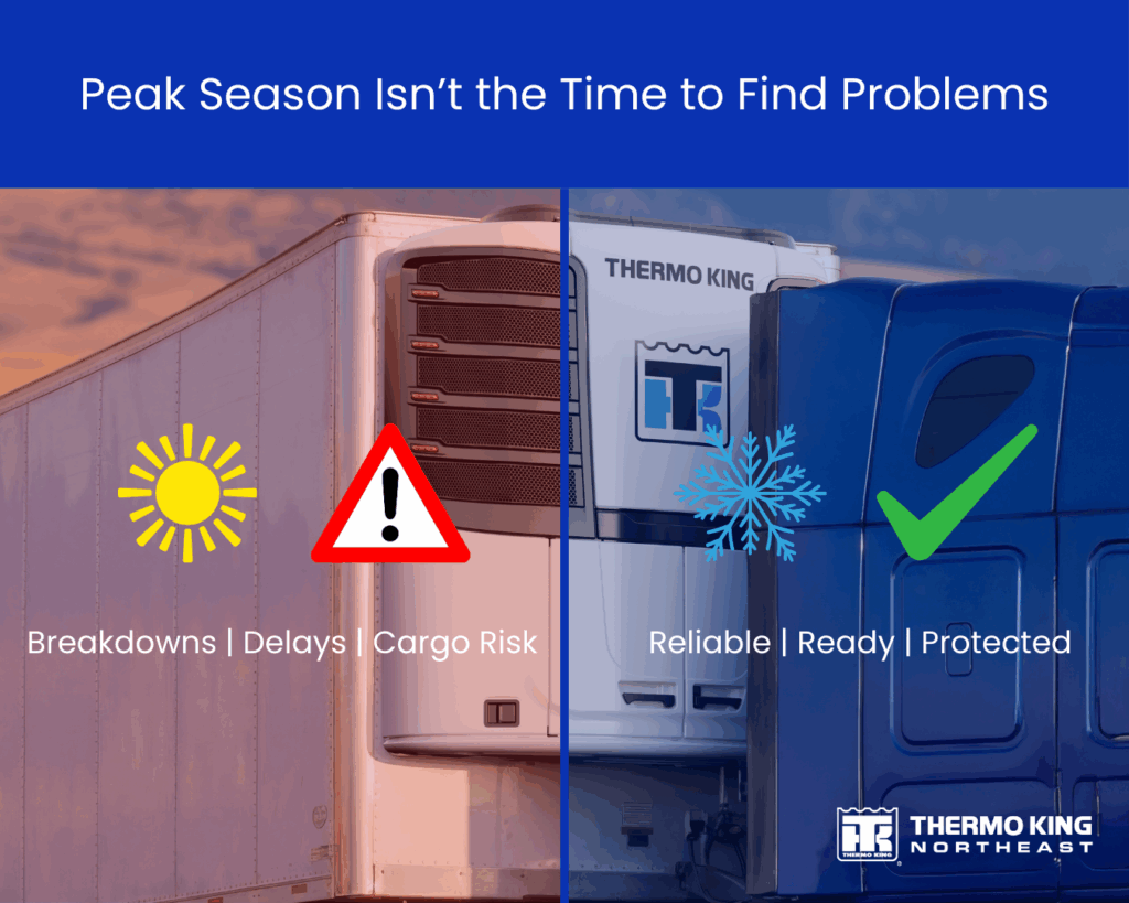 Pre-season maintenance is a season-defining strategy. With proactive service, telematics in place, and genuine Thermo King parts installed by certified Thermo King technicians, you reduce breakdowns, protect cargo integrity, and extend the life of your refrigeration assets. Start your year right. Schedule your inspections now and stay ahead of the heat.